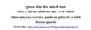 Gujarat Subordinate Services Selection Board (GSSSB), Gandhinagar has released an official notification for the recruitment of Fireman Driver (Class-3) under Urban Development & Urban Housing Department. A total of 13 vacancies will be filled through direct recruitment. Interested candidates can apply online via the OJAS portal from 01 September 2025 to 15 September 2025.